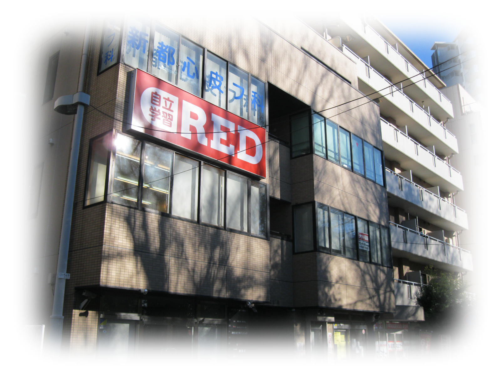 (学習塾さんの赤い看板の上)
